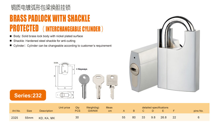 銅質(zhì)電鍍弧形包梁換膽掛鎖