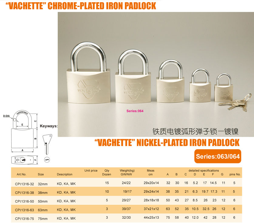 鐵質(zhì)電鍍弧形彈子鎖-鍍鉻/鍍鎳
